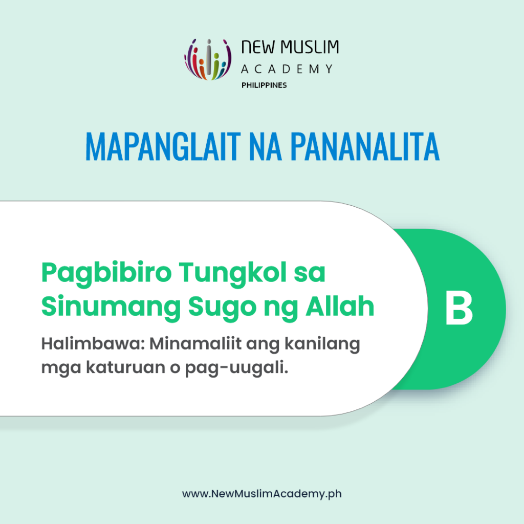 Halimbawa: Paglalarawan sa Allah sa anumang hindi naaangkop na paraan para gumawa ng katatawanan.