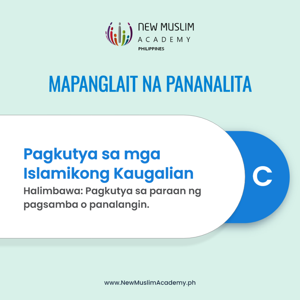 C.) Pagkutya sa mga Islamikong KaugalianHalimbawa: Pagkutya sa paraan ng pagsamba o panalangin.