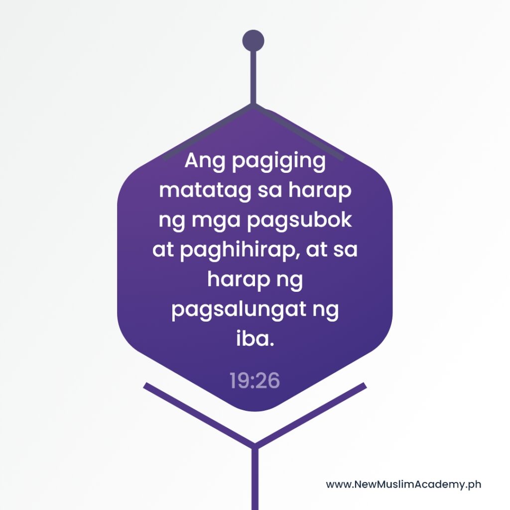 - Ang pagiging matatag sa harap ng mga pagsubok at paghihirap, at sa harap ng pagsalungat ng iba. [19:26]
