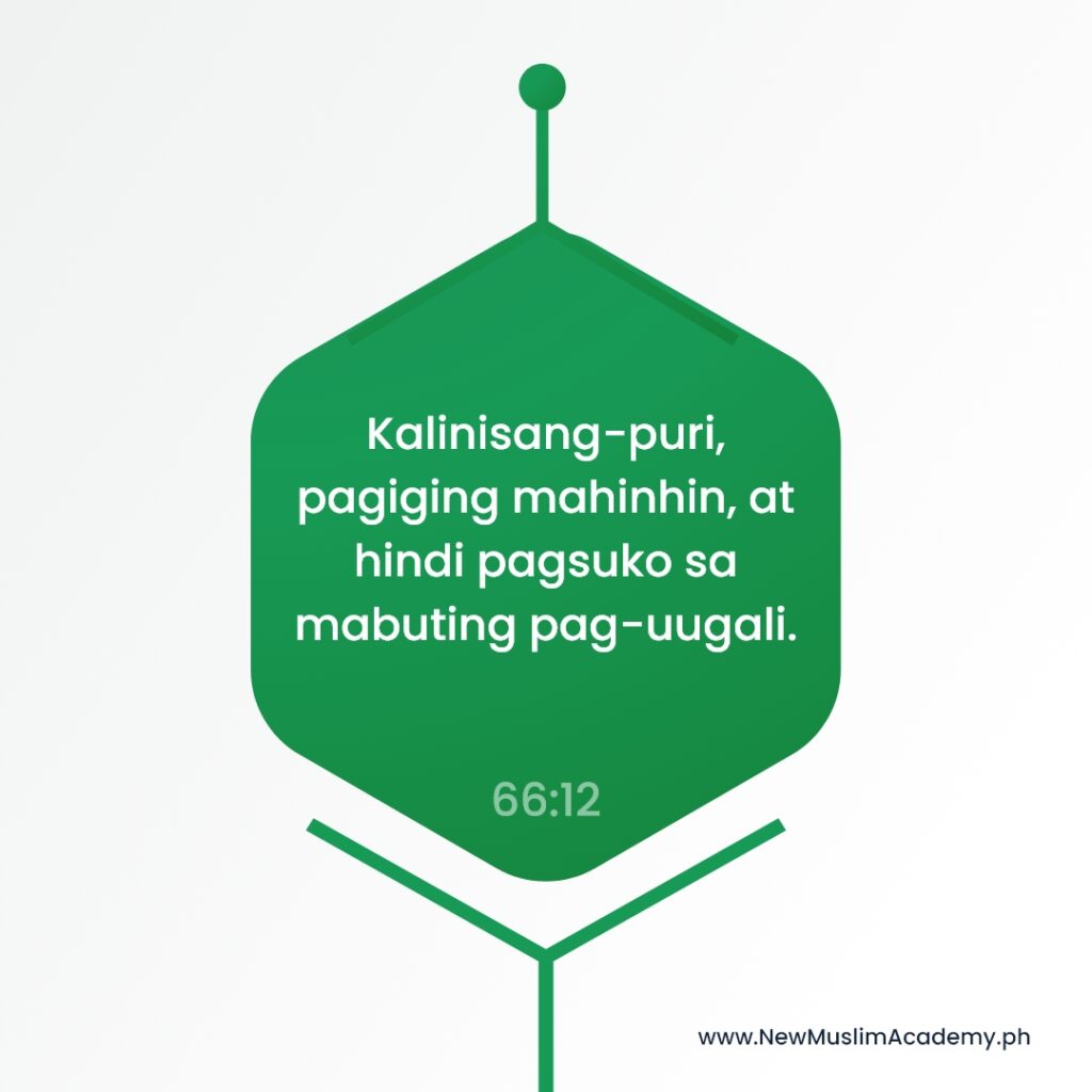 - Kalinisang-puri, pagiging mahinhin, at hindi pagsuko sa mabuting pag-uugali. [66:12]